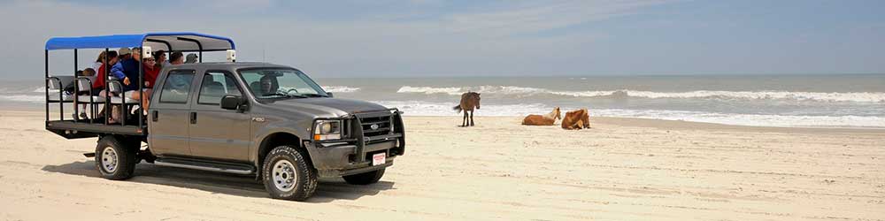 We’re open almost year round! From January through March, enjoy a Corolla wild horse tour from the warmth and comfort of an enclosed SUV. From April until November, take your tour safari style in one of our famous open-air trucks!